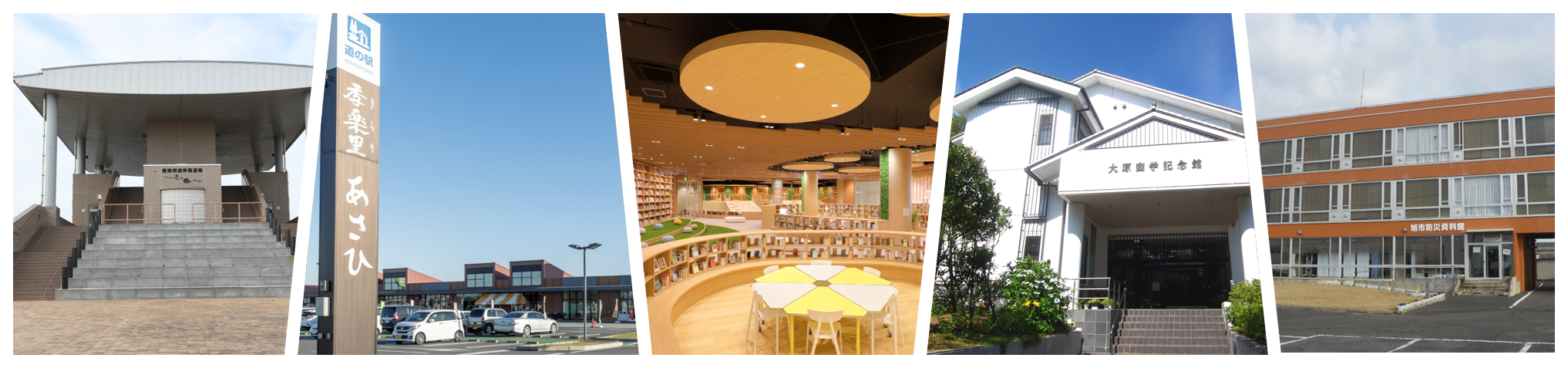■スポット:1.飯岡刑部岬展望館~光と風~ 2.道の駅季楽里あさひ 3.おひさまテラス 4.大原幽学記念館 5.旭市防災資料館