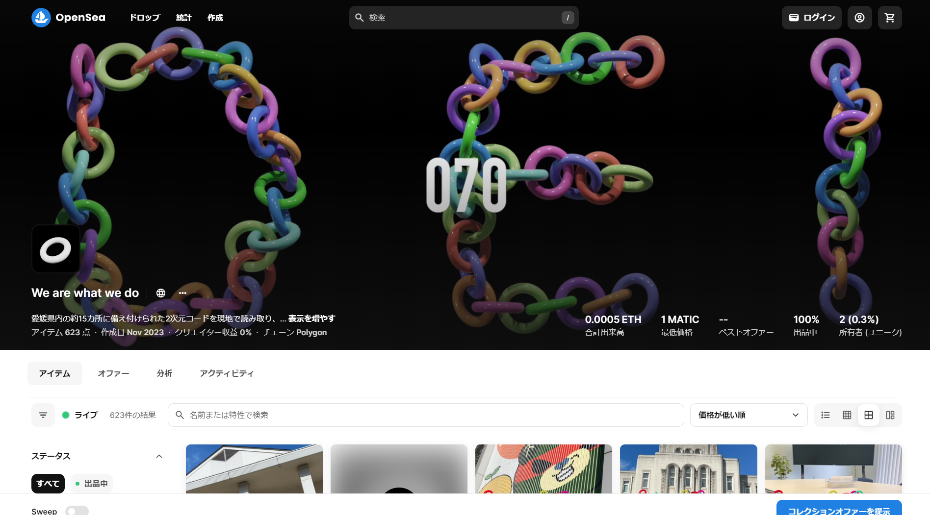 画像はプロジェクトの趣旨に沿ってクリエーティブ・コモンズの中でもCC0――著作権などいかなる権利も保有しない――を表明しています。その上で、愛媛県のウォレットでプロジェクト公式を掲げてNFT化することで、デジタルデータを所有することの可能性について考えてもらう試みです。