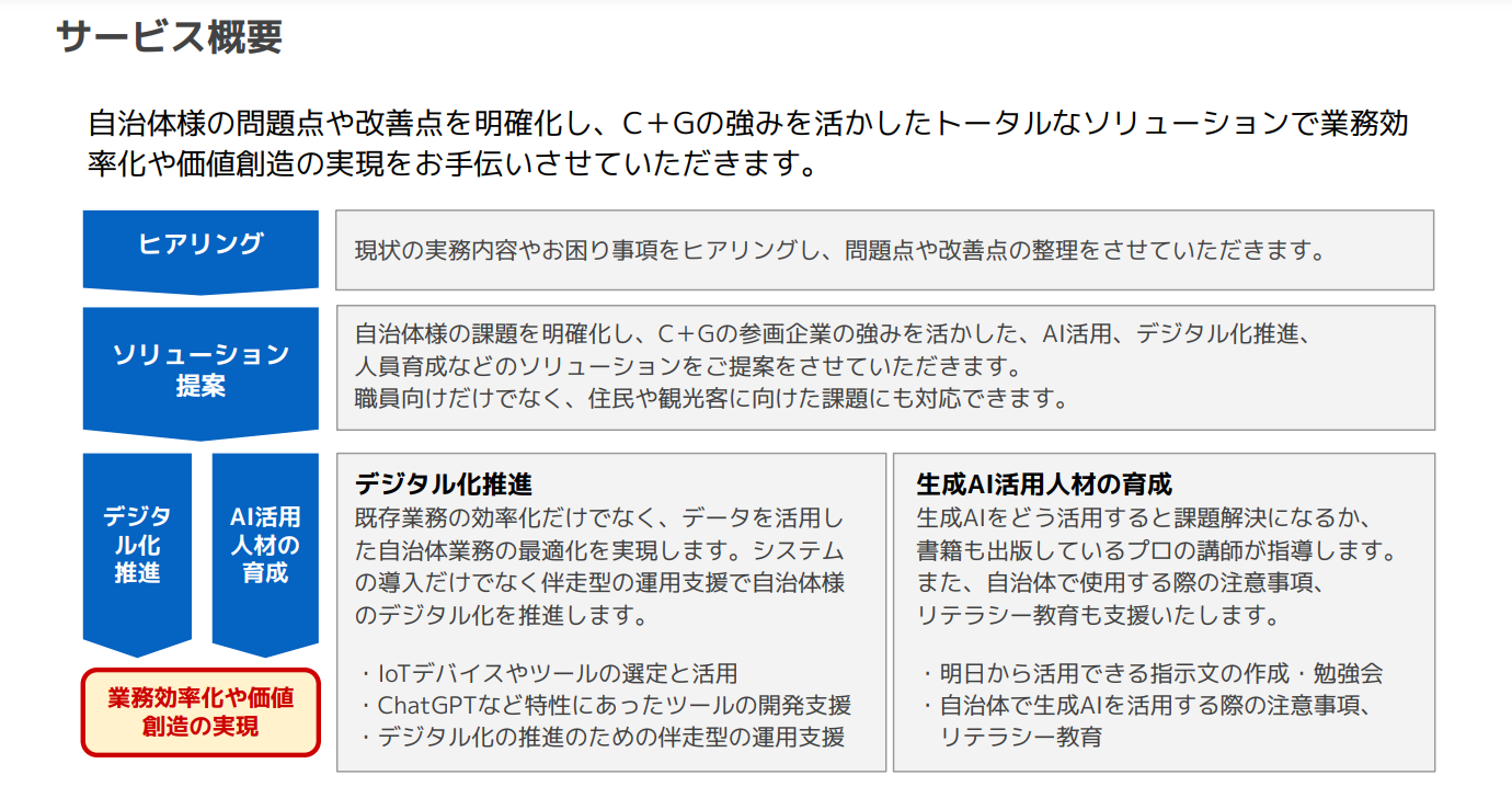 自治体における問題点や改善点を明確化し、ヒアリングから、実際の導入までをサポートいたします。