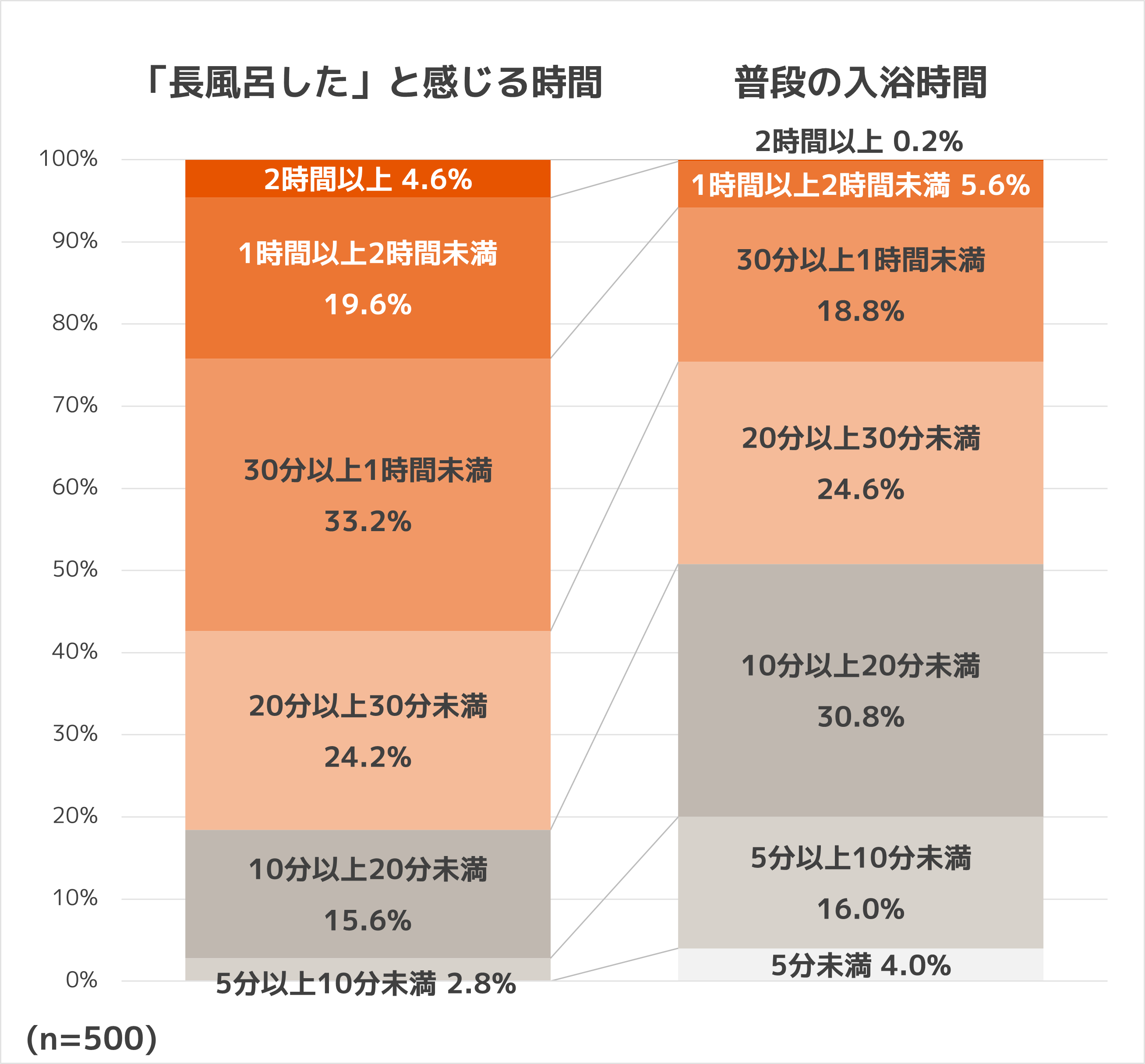 ・「長風呂した」と感じる時間、「30分以上」が最多3割