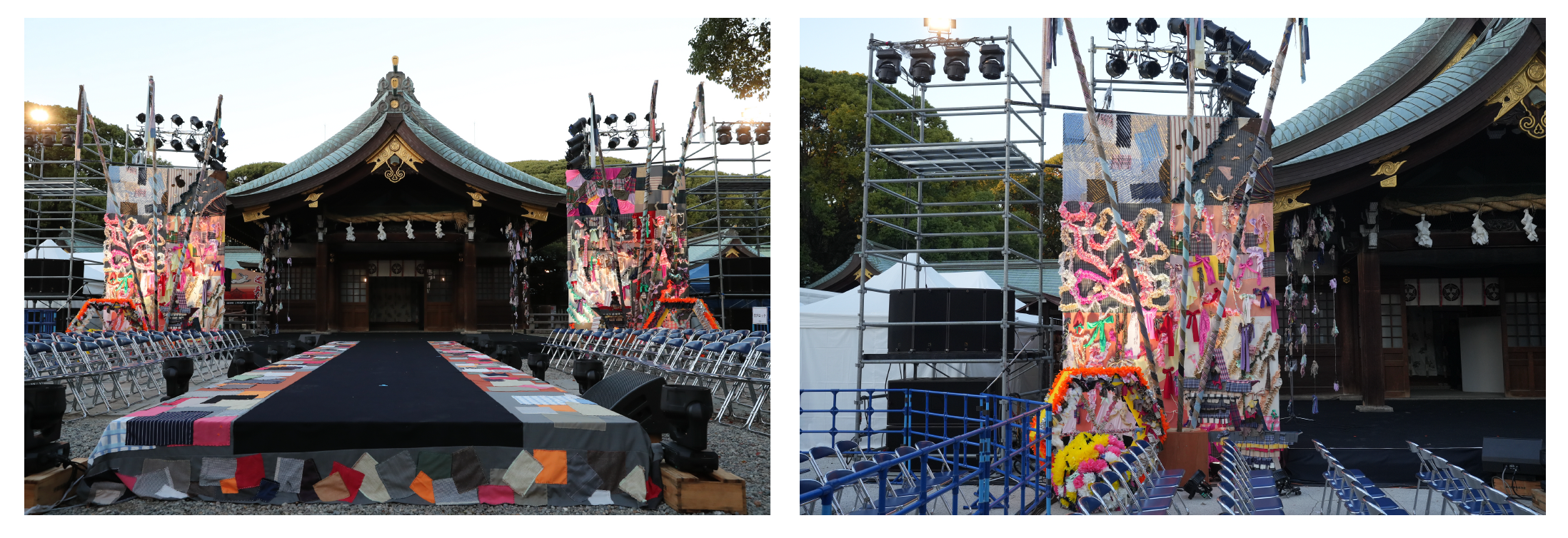 ■真清田神社のステージ装飾とランウェイにはアップサイクルした尾州を使用!