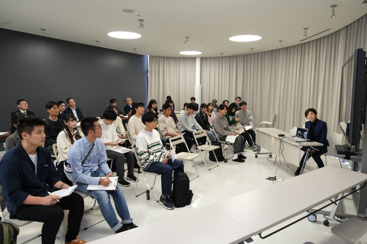 オンラインで参加した岩城は、自身の珠洲移住のきっかけと、これからの地方経済のありかたなどを語り、学生の質問に応じました。また、清水は地場産品を使った商品開発の経緯や、地元農家と共同で進めている有機農業などについて説明しました。