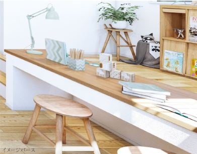 リビングから段差を設けた場所にカウンターを設置。リモートワークをはじめ、子どもの宿題や趣味の場所としてなど多彩に利用できます。横に設置されたリーディングヌックは、秘密基地のような半個室空間になっています。