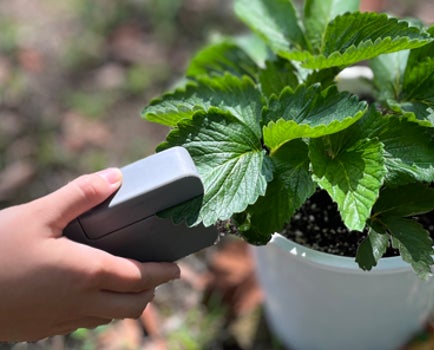 植物にかかるストレス信号を検知し、指標化する技術。神戸大、京都大などとの共同研究に基づく新しい測定技術。