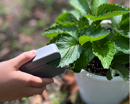 植物にかかるストレス信号を検知し、指標化する技術。神戸大、京都大などとの共同研究に基づく新しい測定技術。