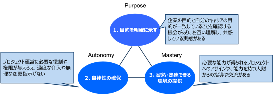 MCI Vol.8では、経営層と社員の信頼関係構築に必須の3要素である、Purpose(目的の明瞭性)、Mastery(習得・熟達性)、 Autonomy(自律性)(出典:D. ピンク、Motivation3.0 )について、当社がEPMOのご支援をおこなった事例を用いながら解説します。