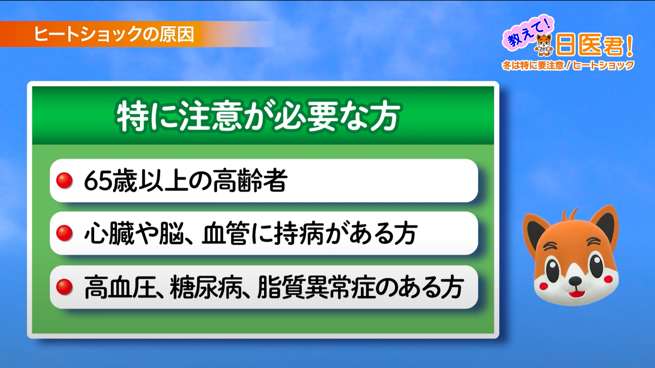 本動画は冬に向けて、ヒートショックについて注意を呼び掛けるため、たかはしハートクリニック院長の髙橋利之先生の監修の下に制作したものです。