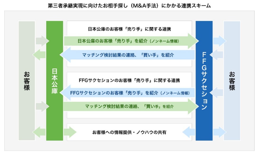 FFGサクセションと日本公庫は、地域で必要とされる事業を次世代につないでいくため、M&A手法やお客さまへの情報提供等による事業承継支援を連携して行うことで、中小企業・小規模事業者の円滑な事業承継をサポートし、福岡県のみならず九州地区全体の地域経済の活性化に貢献してまいります。