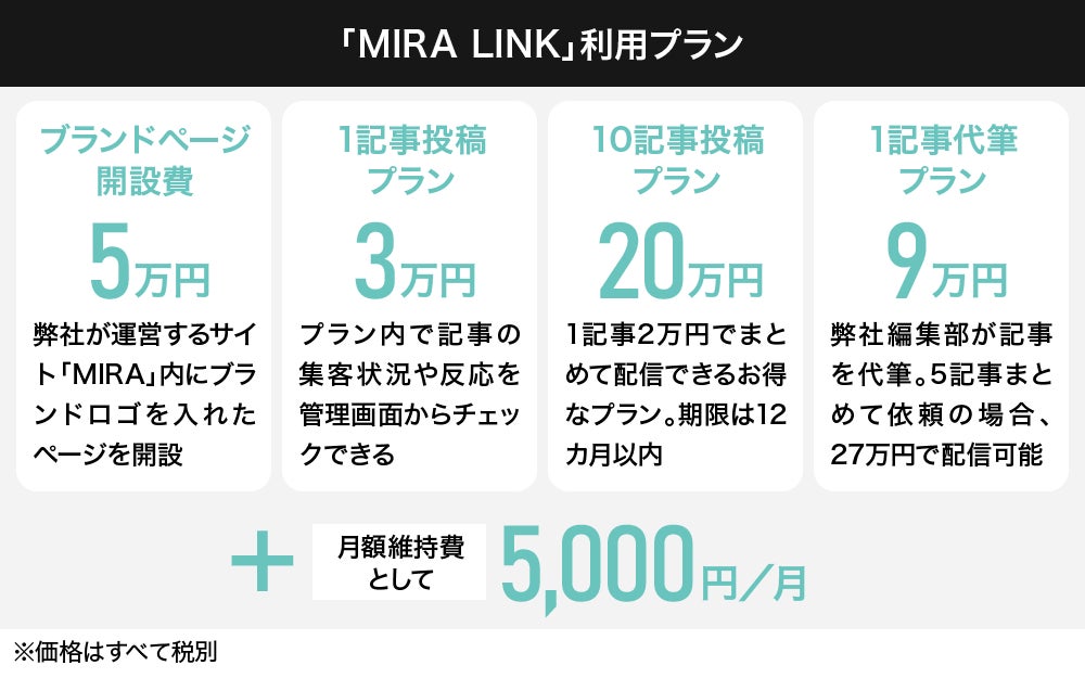 1企業あたり月額5,000円~で提供しており、投稿記事数等に応じた各種プランを用意しています。「MIRA LINK」を通じて新型コロナウイルスの感染拡大で販売が落ち込む化粧品(美容)業界の接客DXに貢献していきます。