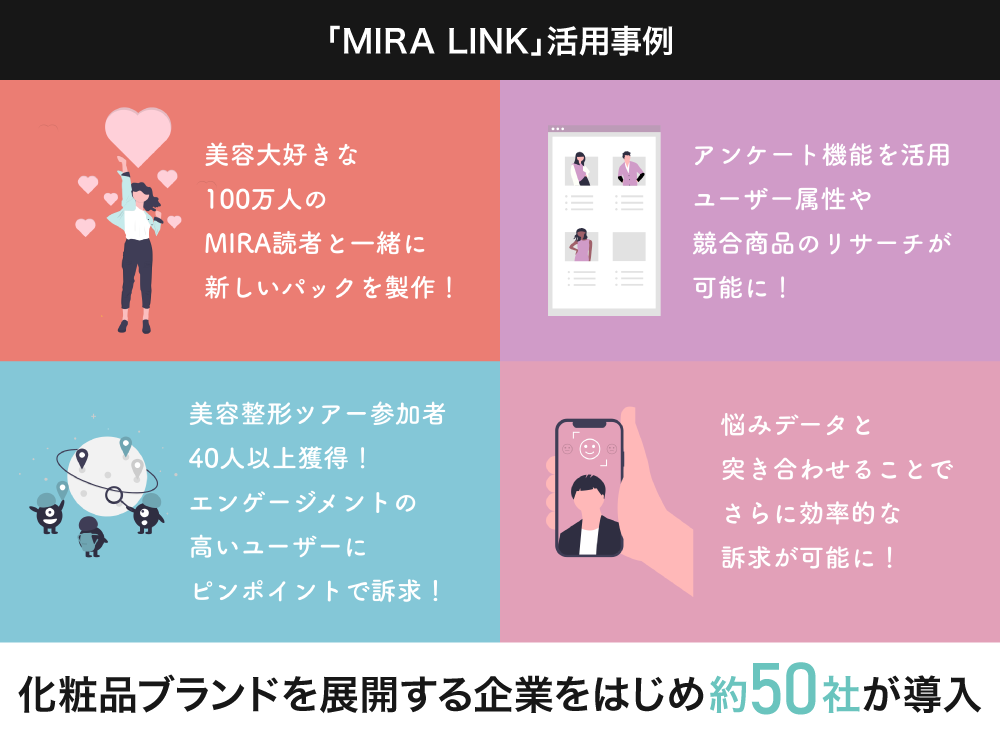 「MIRA LINK」は、既に約50社に導入いただき、自社ブランドの拡散に活用いただいています(詳しくはこちら)。