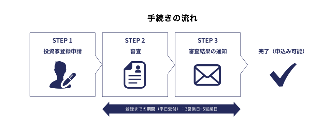 投資家登録の審査に、数日時間を要する場合がございますので、投資ご検討の際は早めのご登録をお願い致します。