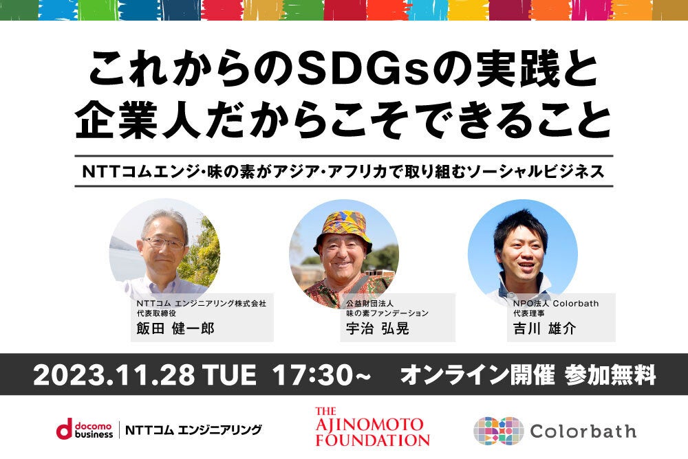 今回ご登壇いただくNTTコム エンジニアリングさんとは、「SDGsアクションプログラム」という形で協働を実施しています。ワークタイムのうち約20%を本活動にあてることが可能という制度のもと、日々のミーティングのほか、社員の方に実際にネパール・マラウイに渡航してもらい、事業アイデアを立案・実践する活動をおこなっています。