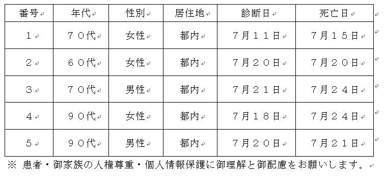 新型コロナウイルスに関連した患者の死亡について business Twitter Facebook はてブ Pocket LINE コピー 2022.07.26 この記事は約1分で読めます。 都内で新型コロナウイルスに感染した方が死亡されましたのでお知らせします。 お亡くなりになった方のご冥福をお祈り申し上げます。