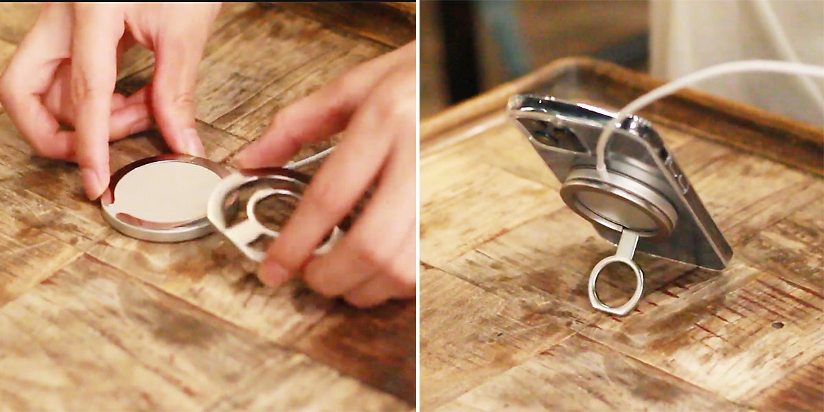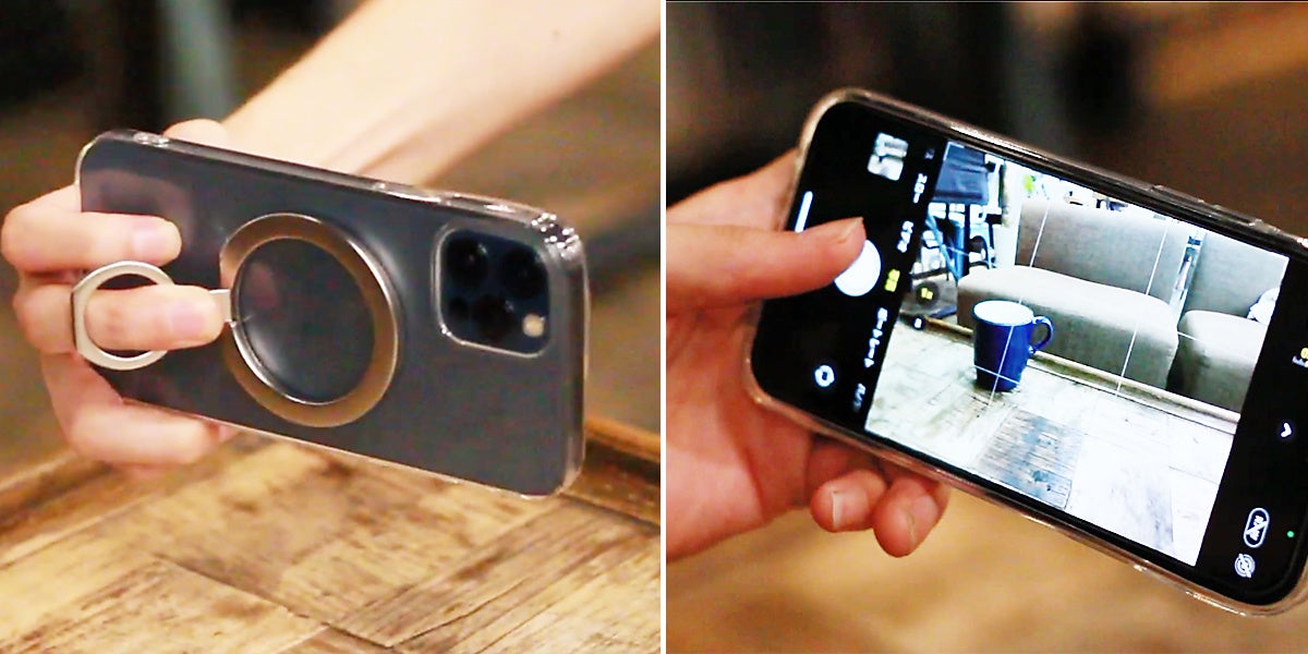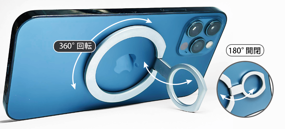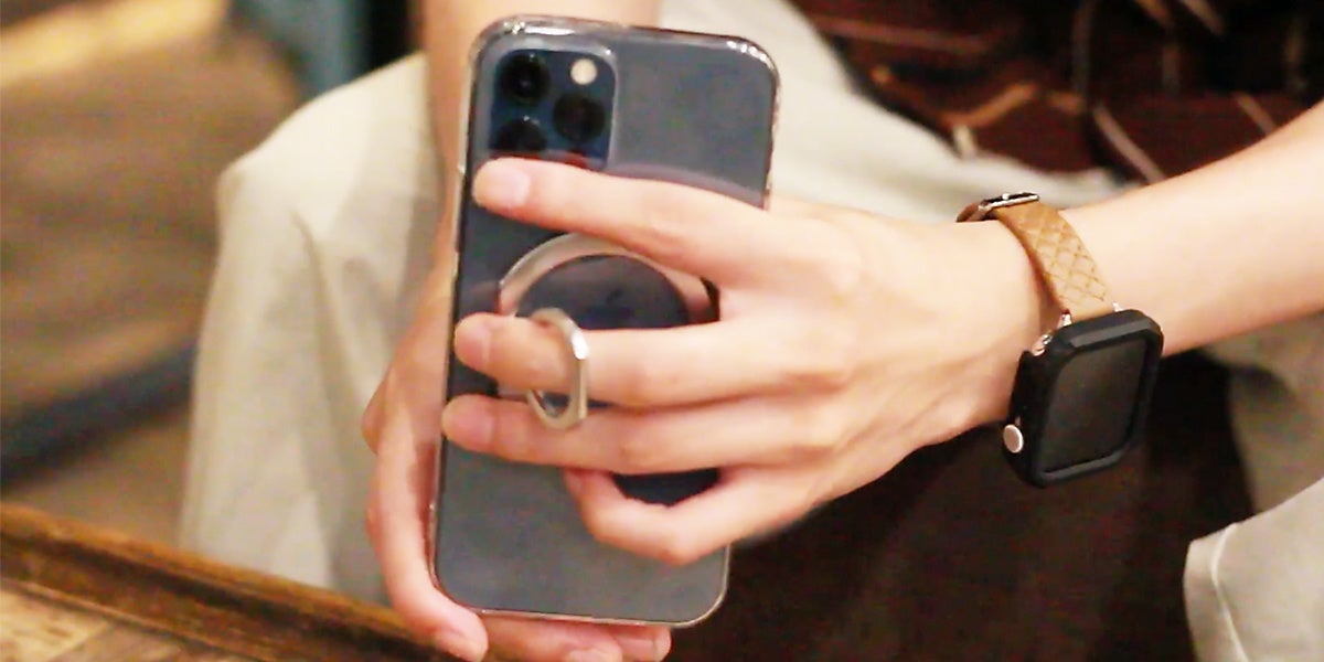 MagSafe充電中にも「MAGHO RING」と併用できるので、充電中のスタンド利用としても使えます