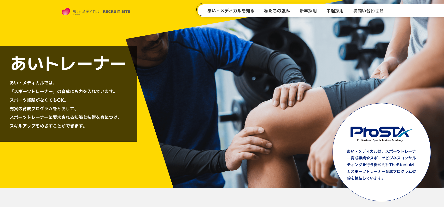 あい・グループ採用公式サイト-トレーナーページ:https://www.ai-medical.co.jp/recruit/strength/trainer/