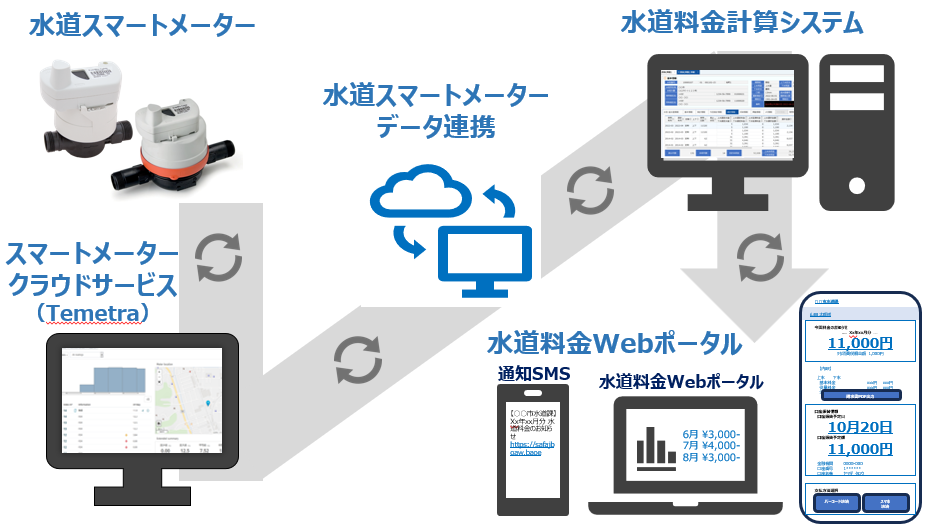 水道スマートメーター、水道料金システム、水道料金Webポータルのワンストップソリューションサービスを提供し、全国の水道事業体と共によりよい未来を築いていきます。