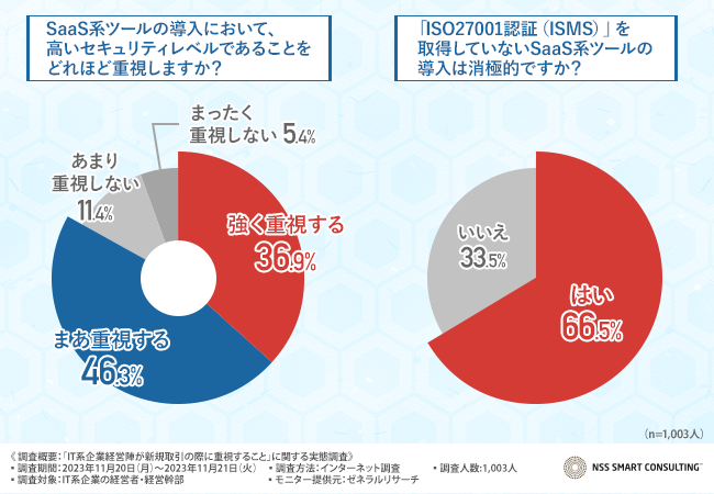 そこで今回、ISO・HACCPの取得、運用サポートサービス「ISOプロ(https://activation-service.jp/iso/)」を提供するNSSスマートコンサルティング株式会社はIT系企業の経営陣・経営幹部を対象に「IT系企業経営陣がSaaS系ツール導入の際に重視すること」に関する調査を実施しました。