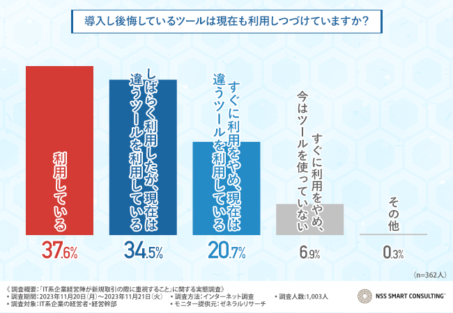 『しばらく利用したが、現在は違うツールを利用している(34.5%)』