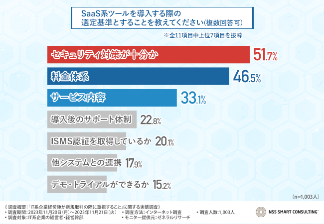 調査概要:「IT系企業経営陣がSaaS系ツール導入の際に重視すること」に関する実態調査