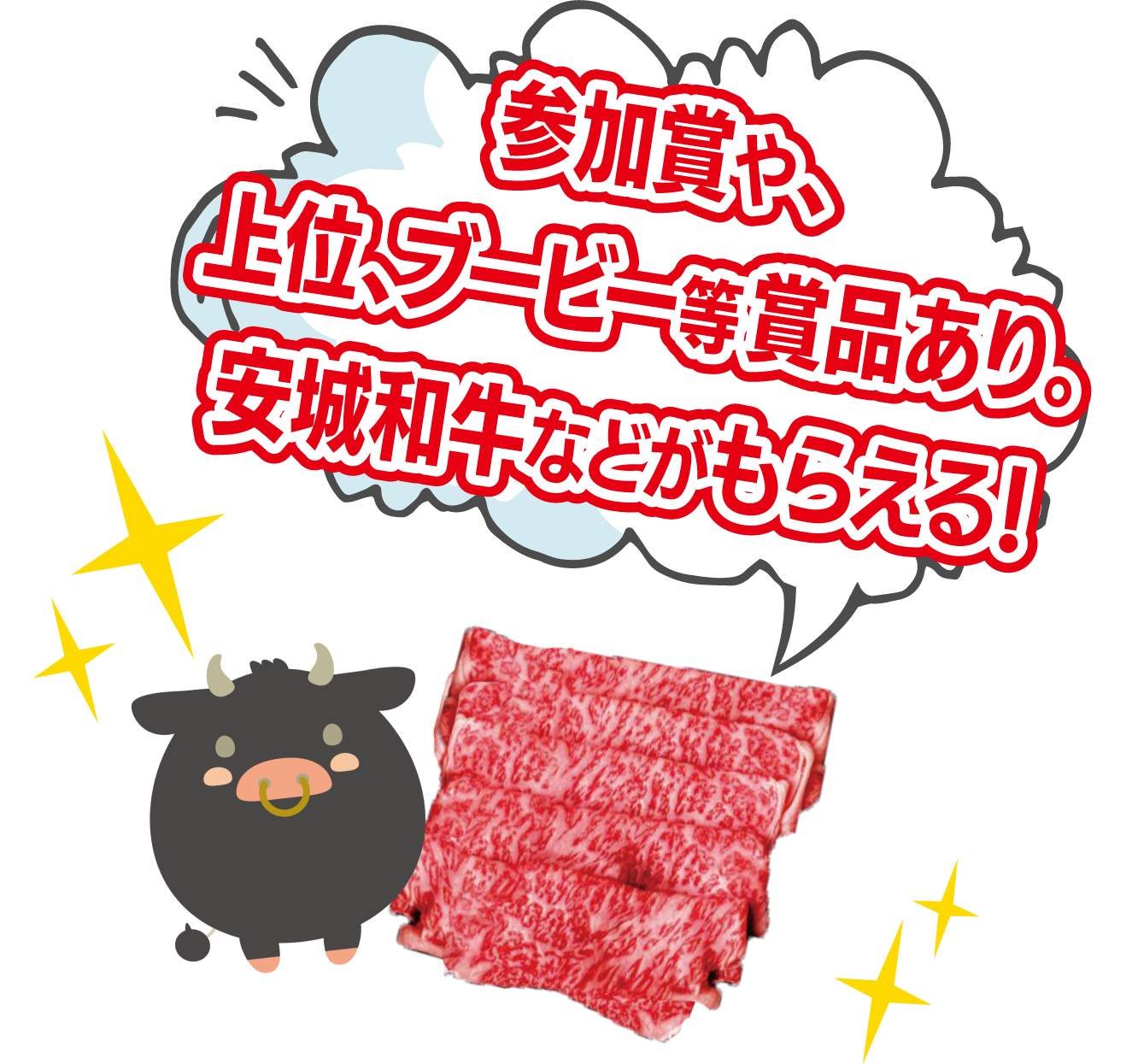 参加賞や上位、ブービー等入賞で安城和牛などがもらえます!