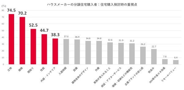 立地(74.5%)、価格(70.2%)、間取り(52.5%)、性能(44.7%)、内装・インテリア(38.3%)と
