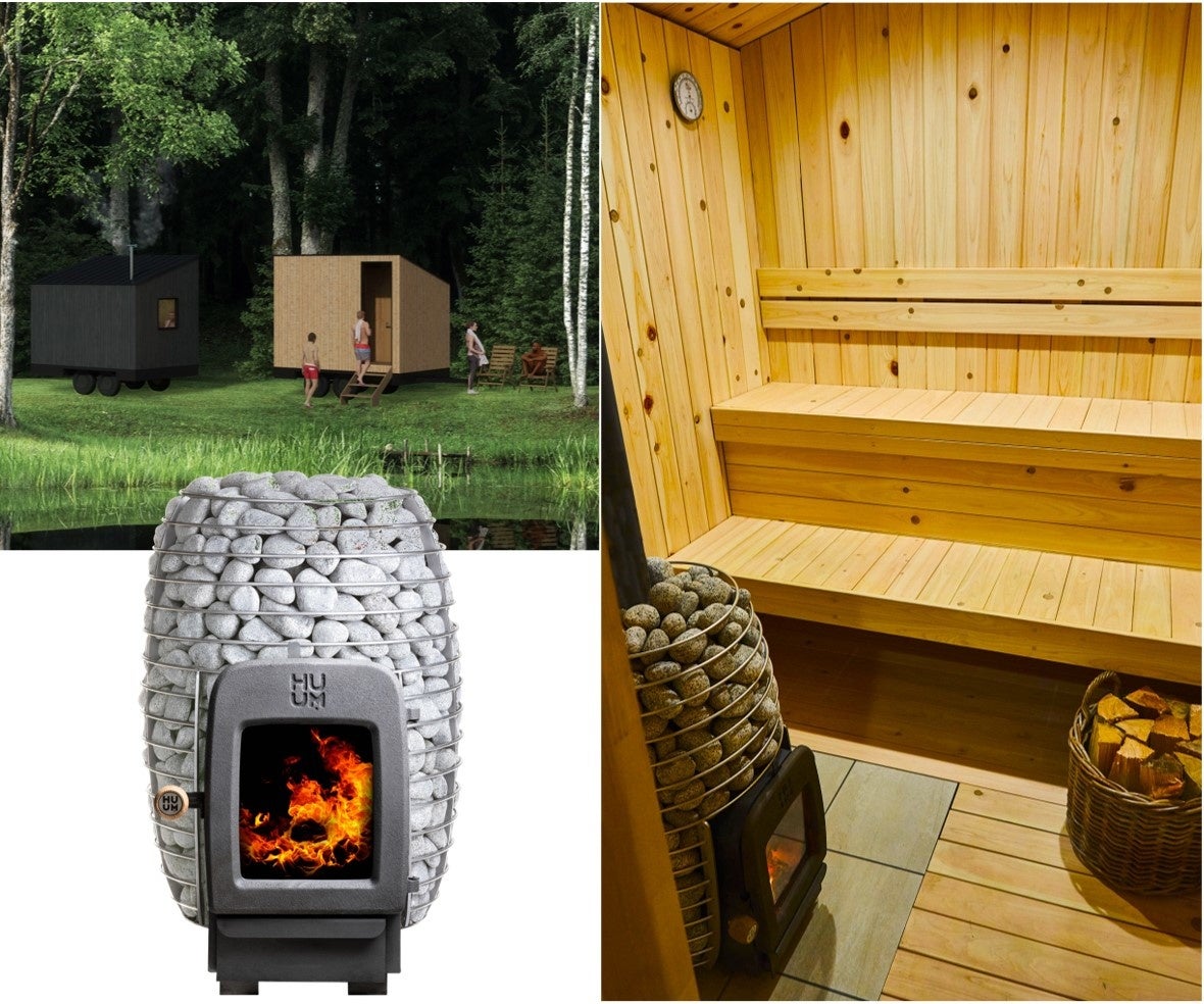 エストニアの優良ブランドHUUMの名作であるスタイリッシュな薪サウナストーブを使用。耐久性、断熱性、デザイン性にこだわった、事業用途でも悪天候でも安心してお楽しみいただけるプライベート性の高いサウナキャビンです。