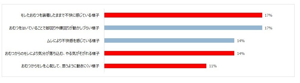 ■おむつ要因の不満点は「モレ」と「脚の動かしにくさ」
