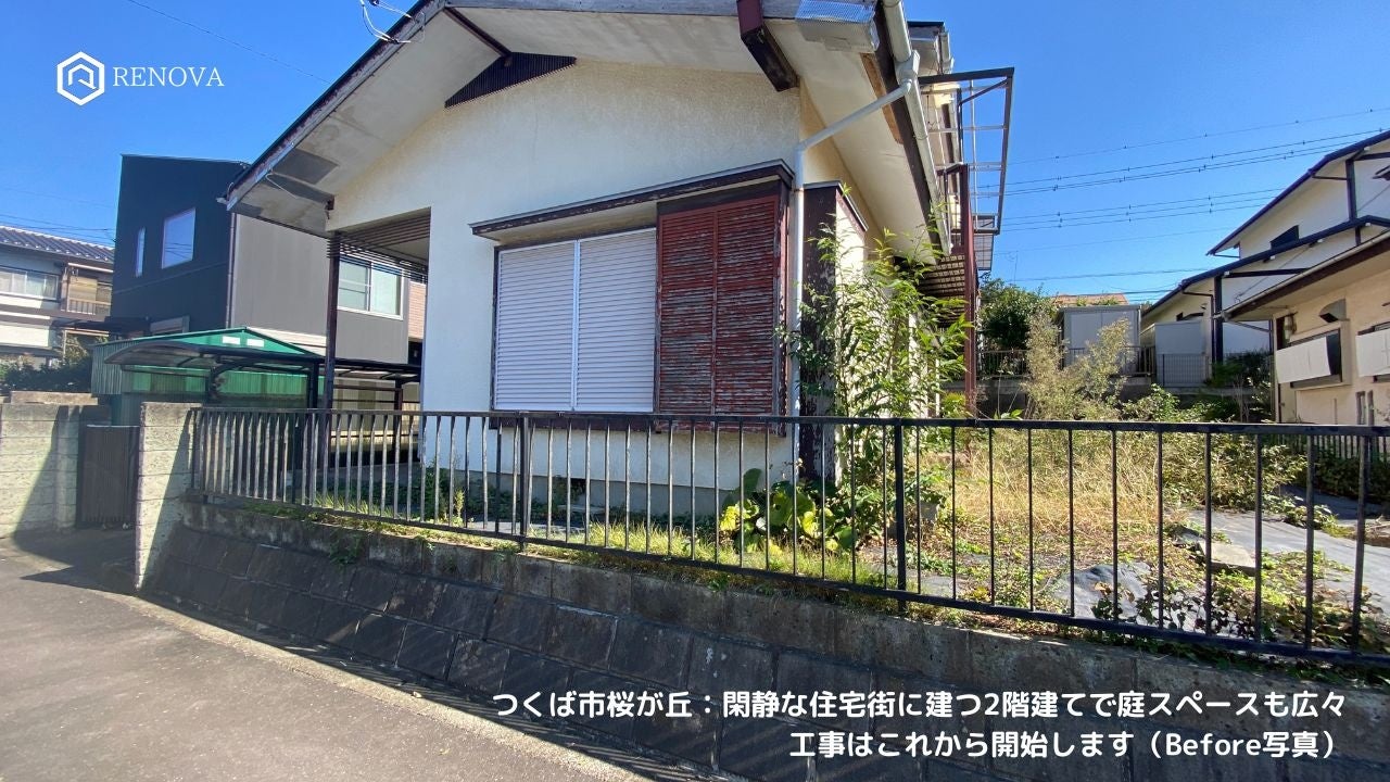 弊社の事務所があるつくば市森の里団地。ここの団地では8棟目のリノベーションハウスです。1970年代の昭和な家で建物は23坪とコンパクトサイズ。3台分の駐車スペースをとっても、家庭菜園やガーデニングを楽しめるスペースが確保できます。牛久市へのアクセスもしやすく、JR常磐線を利用することもできるため都心への通勤も可能です。