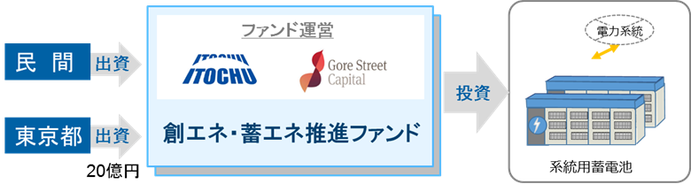 その取組の一環として、東京都は、再生可能エネルギーの導入拡大に資する系統用蓄電池へのファイナンスモデルの確立を目指し、「創エネ・蓄エネ推進ファンド」の創設を進めています。このたび、下記のとおり、運営事業者を決定しましたのでお知らせします。