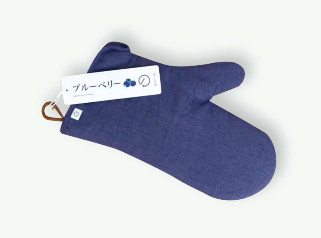 〔“のこりもの”を原料とした「のこり染」で染めた鍋つかみ〕