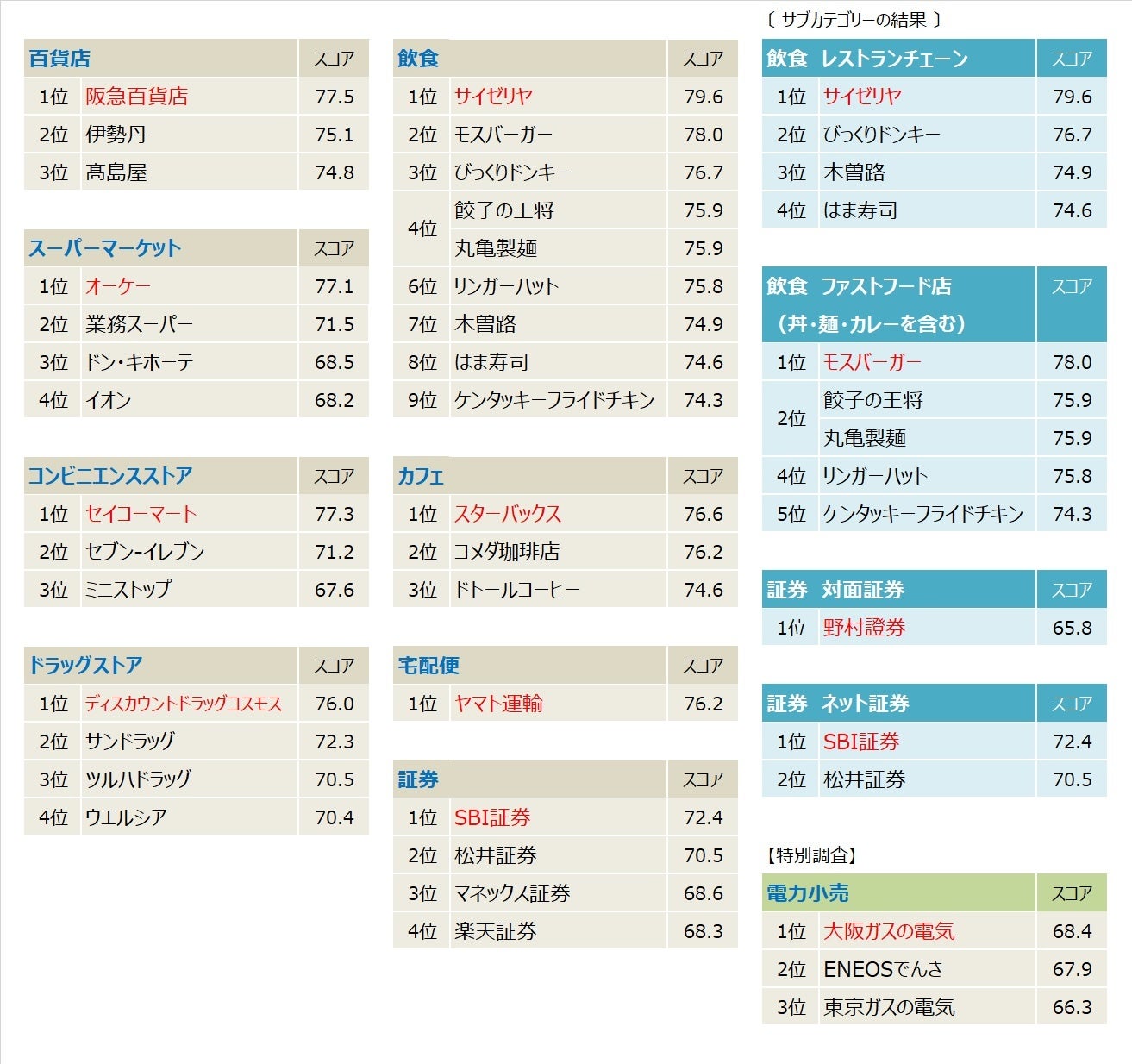 1. ※各業種のランキング対象企業のうち、原則として中央値以上の企業・ブランドを表示