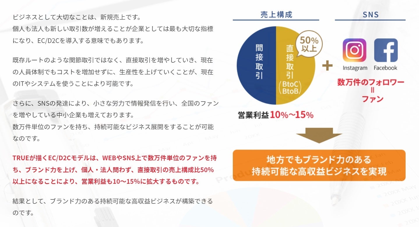 TRUEのD2C/EC運営代行・コンサルティングサービスを実施することにより、