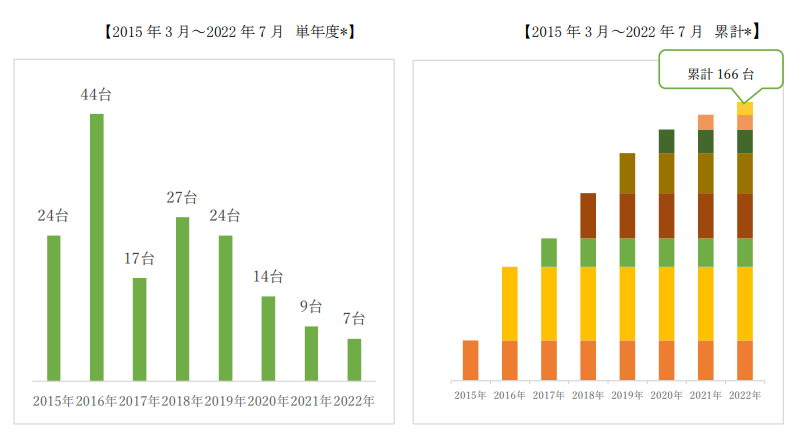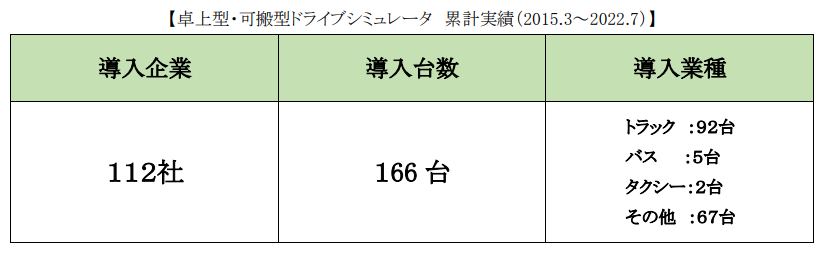 当社では2015年3月以降、企業が自社の安全教育や危険予知トレーニングを継続的に社内で実施できる体制をつくるため、ドライブシミュレータを設備として持つことを提案しています。約6年で下記のような実績となっています。