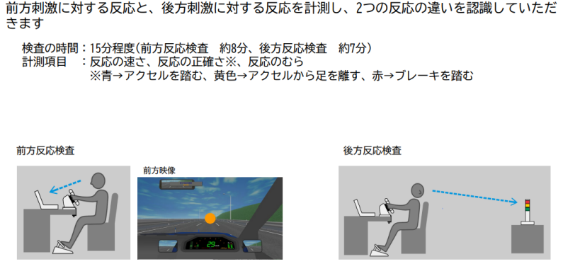 今回新たに新機能といたしまして「運転能力検査:運転能力と認識力の計測」と「運転適性検査2:後退運転時の反応と前方視野の視認性の計測」の2つのオプション教材を追加いたしました。