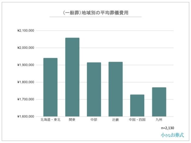 一般葬の全国平均葬儀費用は1,909,574円ですが、地域別に見た一般葬の平均葬儀費用は以下の通りです。