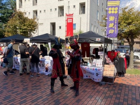 あいこうか市民ホール、碧水ホール前の広場を利用して、甲賀市のお土産やお城にまつわるグッズ販売、またキッチンカーでの飲食販売も実施。