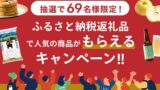 ふるさと納税返礼品で人気の商品がもらえる!総計69名様、寄付総額100万円相当!「ふるさと納税返礼品で人気の商品がもらえるキャンペーン」実施!お米も、お肉も、海鮮も、フルーツも盛りだくさん。