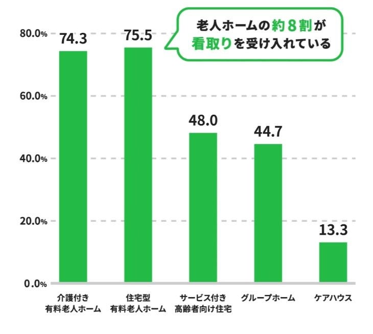 約8割の老人ホームで看取りが受け入れられ、施設での看取り環境は整いつつあります。