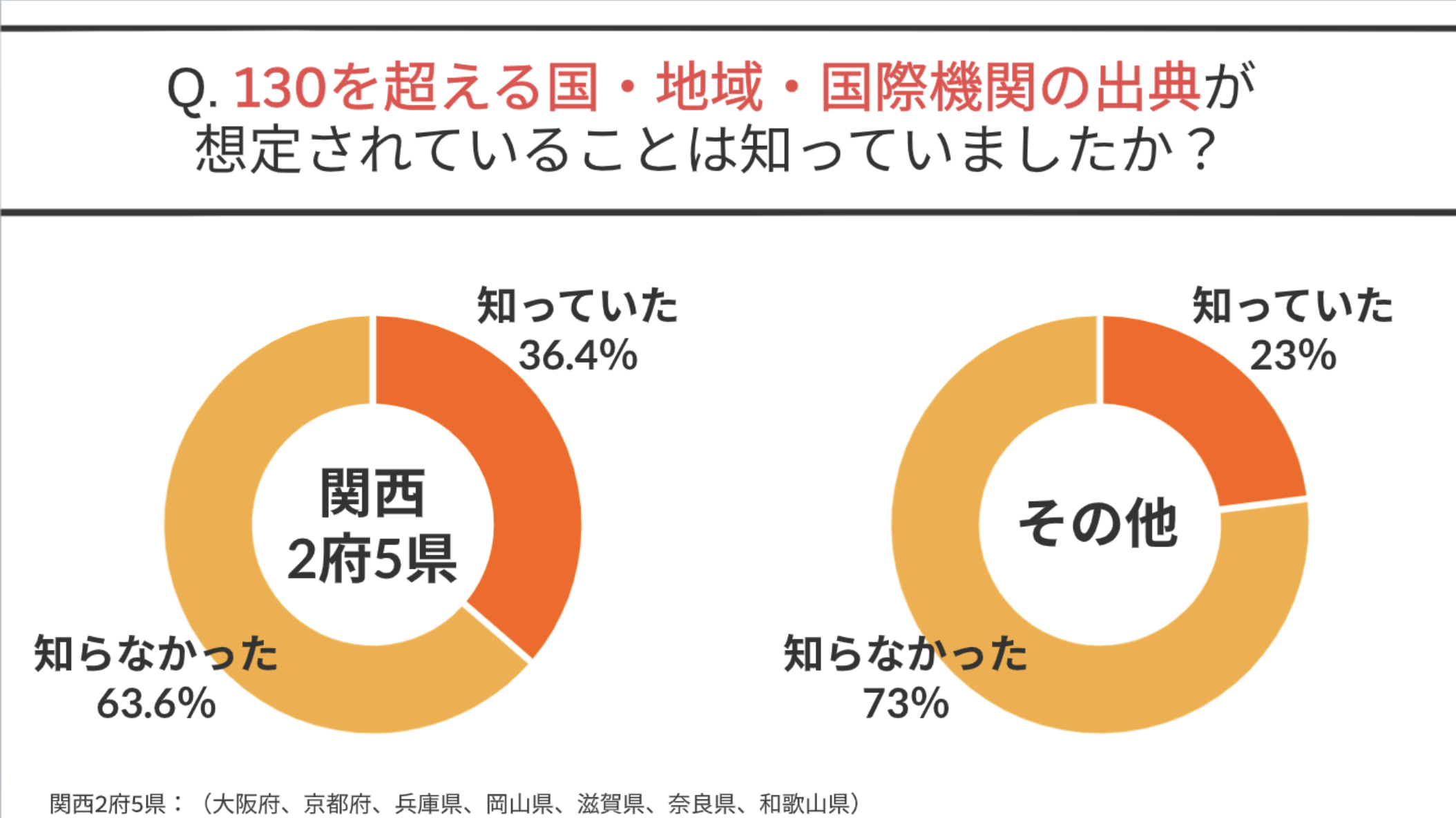 全体としては上記の内容について、既に知っていると答えたのは26%となりましたが、大阪近郊の関西2府5県においては36.4%と、それ以外の地域に比べて高くなっています。