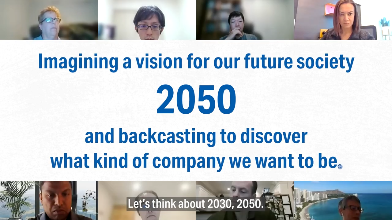 本年4月に発表した中期経営計画2024のコンセプト、“Be a Trailblazer(先駆者たれ) ”は、従業員の提案を参考に生み出されました。「Imagine 2030」では、昨年秋に開催された、世界4極から集結した約40名による社内プロジェクトを振り返り、2030年の旭化成のありたい姿を改めて考えました。