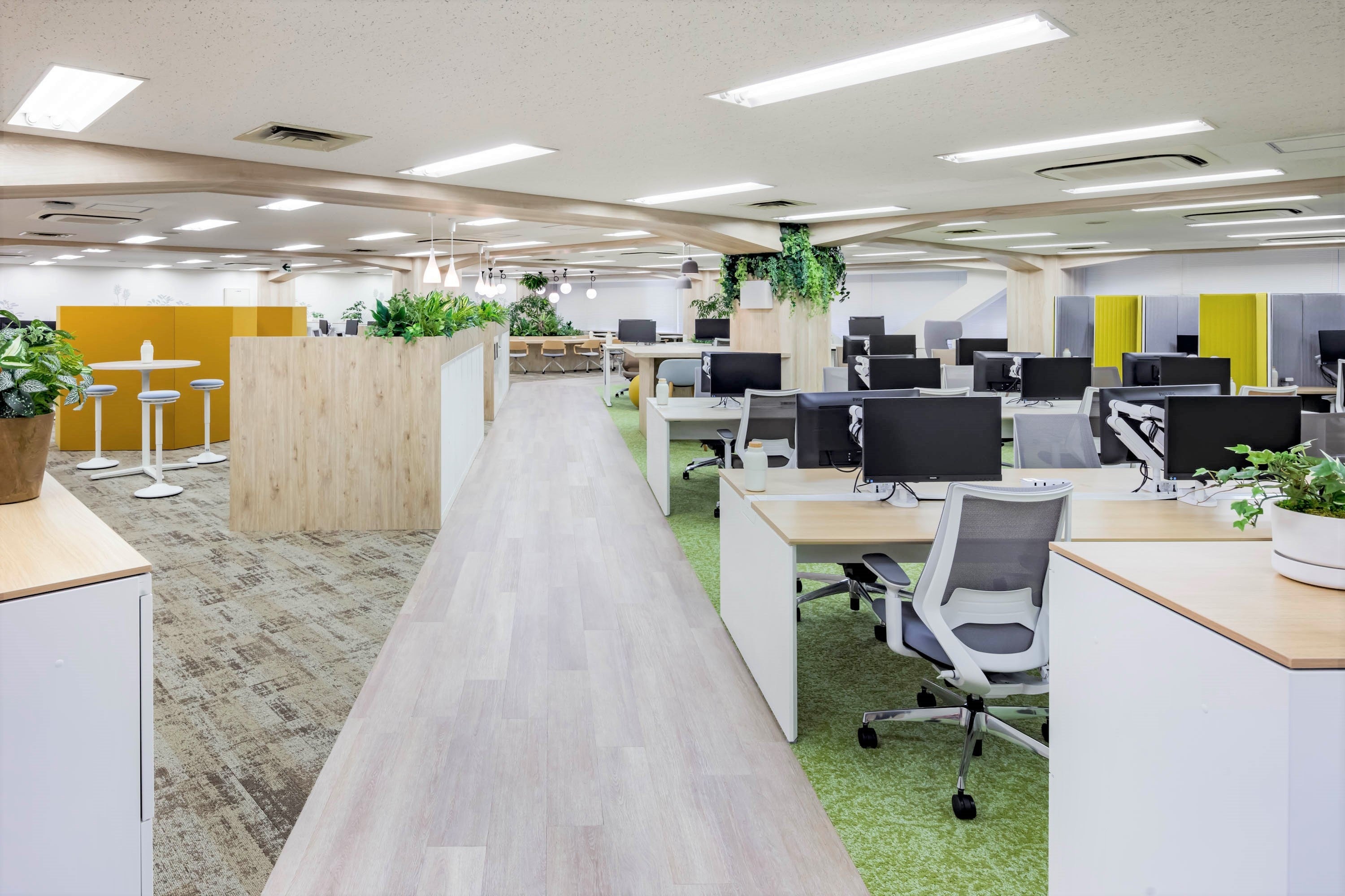 個室型の会議ブースや集中ブース、フレキシブルに形を変えられるオープンミーティングスペース、上下昇降デスクといった特徴ある様々なスペースや設備を設置しました。