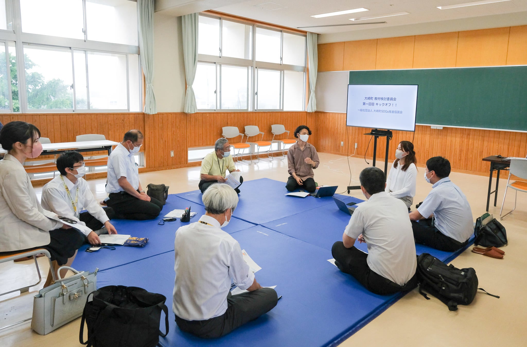 本プロジェクトに関わるメンバーと、教材開発に関する視座を合わせるため、SDGsや環境問題、大崎町の取り組みの概要を共有する初回会合が、本日5月13日(金)に行われました。有志の教員7名(町内小学校教諭6名、町内中学校教諭1名)が集まり、なぜ大崎町で先生たちと共に教材を作るのか、という目的の共有から始まり、教材を実際に使っていく場面、開発・導入の際に現時点で考えられる懸念点などについて意見交換を行いました。須藤指導主事からは「教材開発における切り口として、環境はあくまで視点のひとつ。子どもたちの興味関心を広げられるものを作りたい」という話がありました。