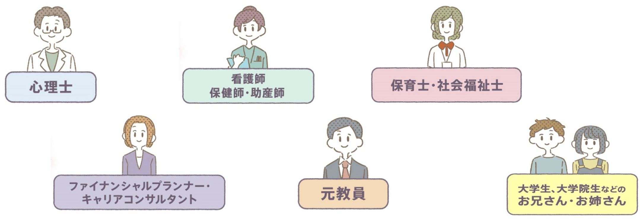 ファイナンシャルプランナー、キャリアコンサルタント、元教員、大学生・大学院生など