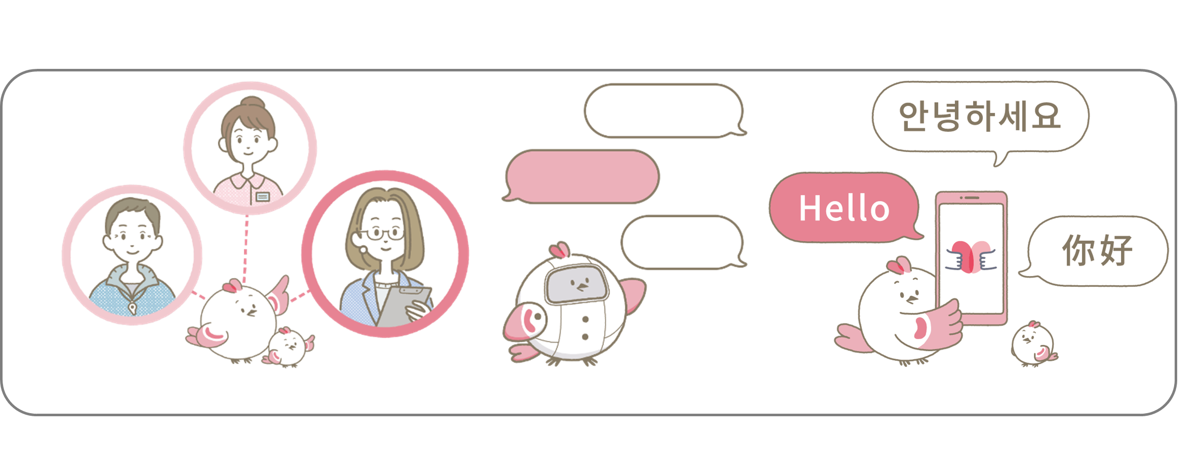 ギュッとチャットのWebサイトは3言語(英語、中国語、韓国語)に、チャット相談はGoogle翻訳の対応言語に翻訳できます。