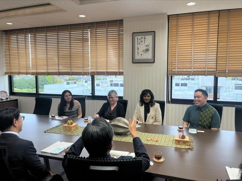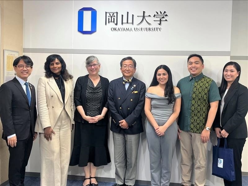 国立大学法人岡山大学(本部:岡山市北区、学長:那須保友)は、2025年10月21~23日に、岡山市・国連大学サステイナビリティ高等研究所・RCE岡山(岡山ESD推進協議会)が主催する「第14回グローバルRCE会議」での本学からの発表のため、本学が招聘した登壇者、英国エクセター大学のRajani Naidoo副学長、南アフリカ共和国ステレンボッシュ大学のDarla Deardorff教授、ユネスコユースのIlan Envergaさん、岡山大学ユネスコチェア・ユースアンバサダーのSofia Bermudezさんの4人が10月20日に那須保友学長を表敬訪問しました。本学からは横井篤文副学長(グローバル・エンゲージメント担当)、津波優UGAらが出席しました。