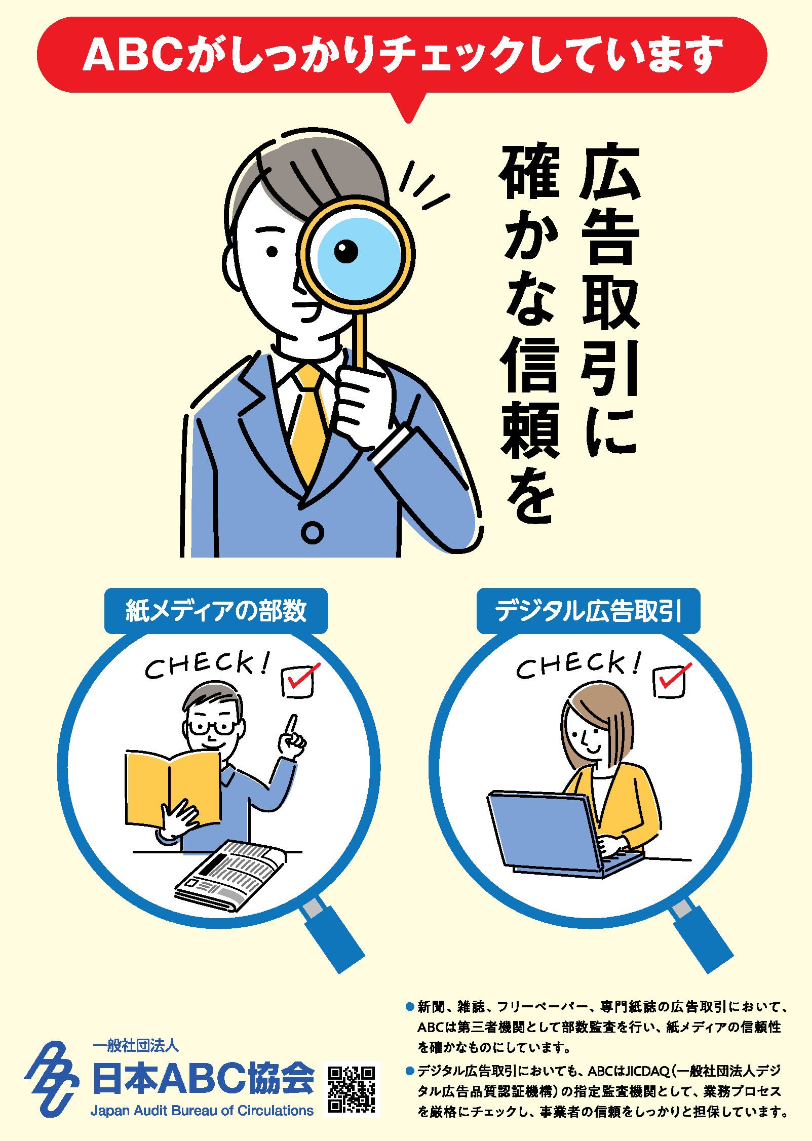 一般社団法人 日本ABC協会(所在地:東京都千代田区、専務理事:加藤弘志)は、2025年10月、協会の活動および社会的意義を広く周知することを目的とした新たなPR広告を公開いたしました。