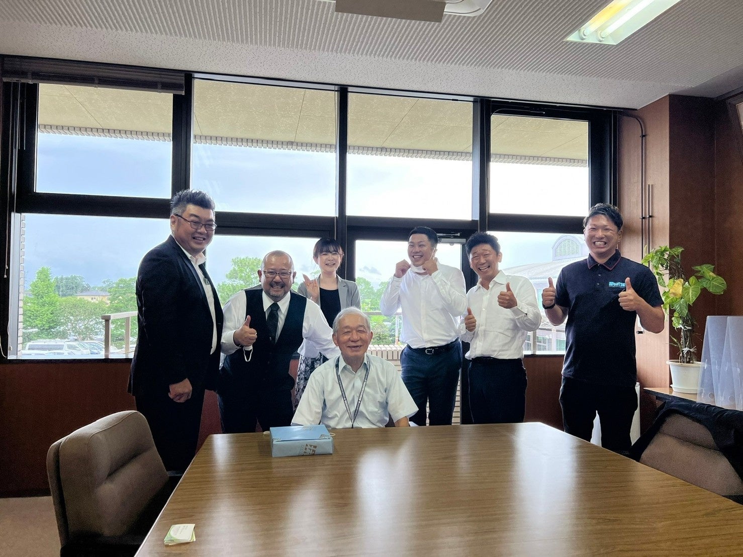 (左:長生村 小高村長 右:JRD 高木専務理事)