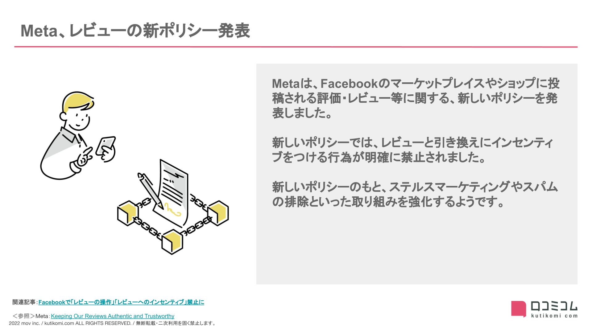 本レポートでは6月の口コミマーケティングニュースとして、GoogleやMeta、Amazonで不正なレビュー(口コミ)が横行してしまっている現状や、それらを各プラットフォームがどのように取り締まっているのかについて取り上げました。さらに、GoogleマップやApple Maps、NAVITIMEなどの最新機能もまとめています。