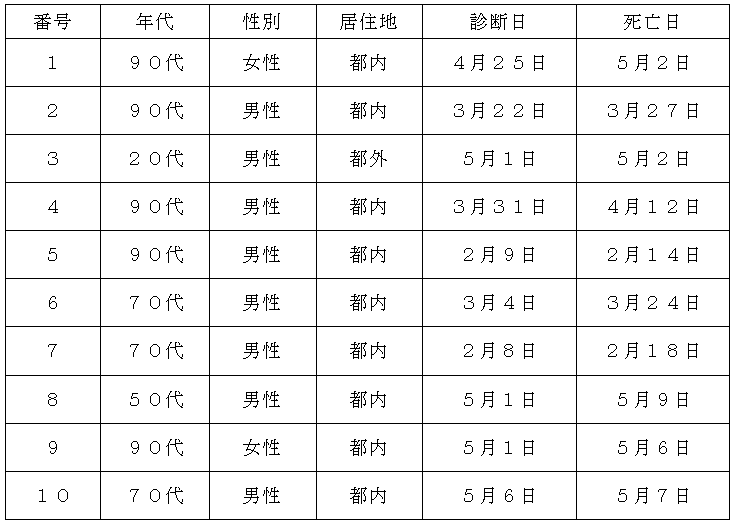 新型コロナウイルスに関連した患者の死亡について business Twitter Facebook はてブ Pocket LINE コピー 2022.05.15 この記事は約1分で読めます。 都内で新型コロナウイルスに感染した方が死亡されましたのでお知らせします。 お亡くなりになった方のご冥福をお祈り申し上げます。 ※ 患者・御家族の人権尊重・個人情報保護に御理解と御配慮をお願いします。