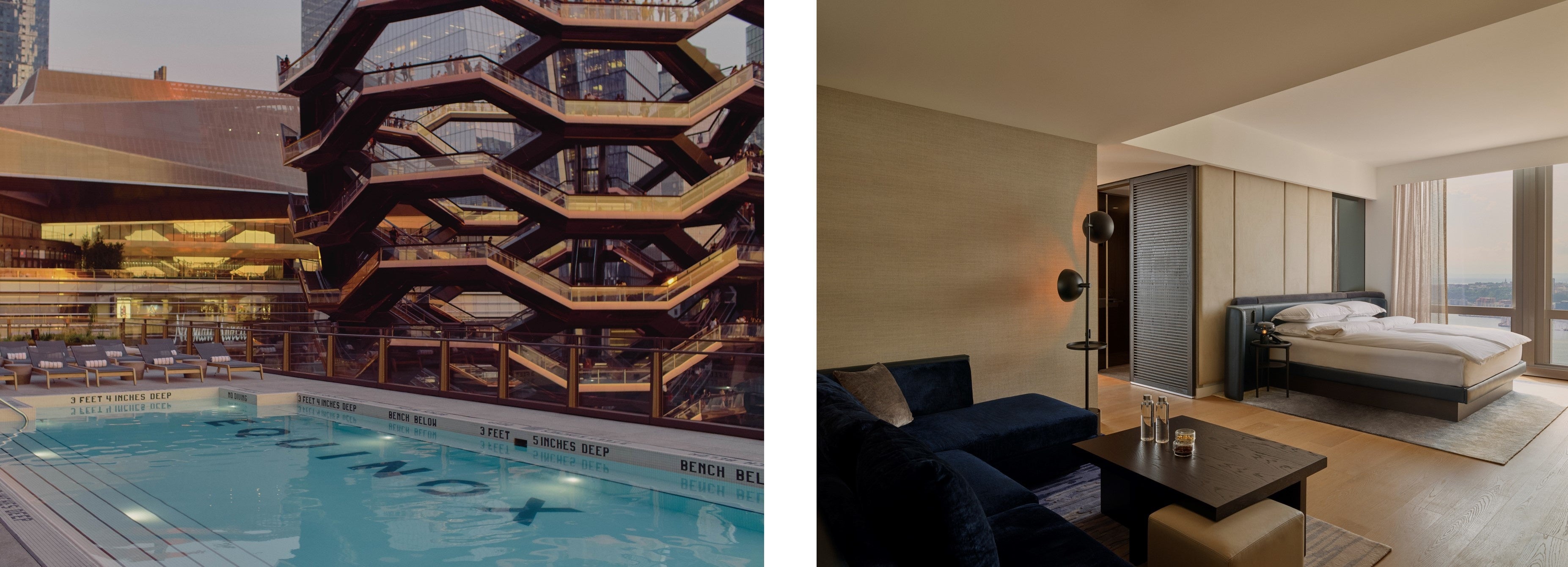 ホテルでの滞在中、すべての体験がウェルネスに繋がります。例えば、宿泊者は、ホテル滞在中にエクイノックス社が運営するフィットネスクラブ「エクイノックス」が利用できます。また客室は、質の高い睡眠環境とマンハッタンの都市景観やハドソン川を望むラグジュアリーな空間を備えています。加えて、スパや屋内・屋外双方にプールを完備し、各種リカバリートリートメントメニューを提供しています。